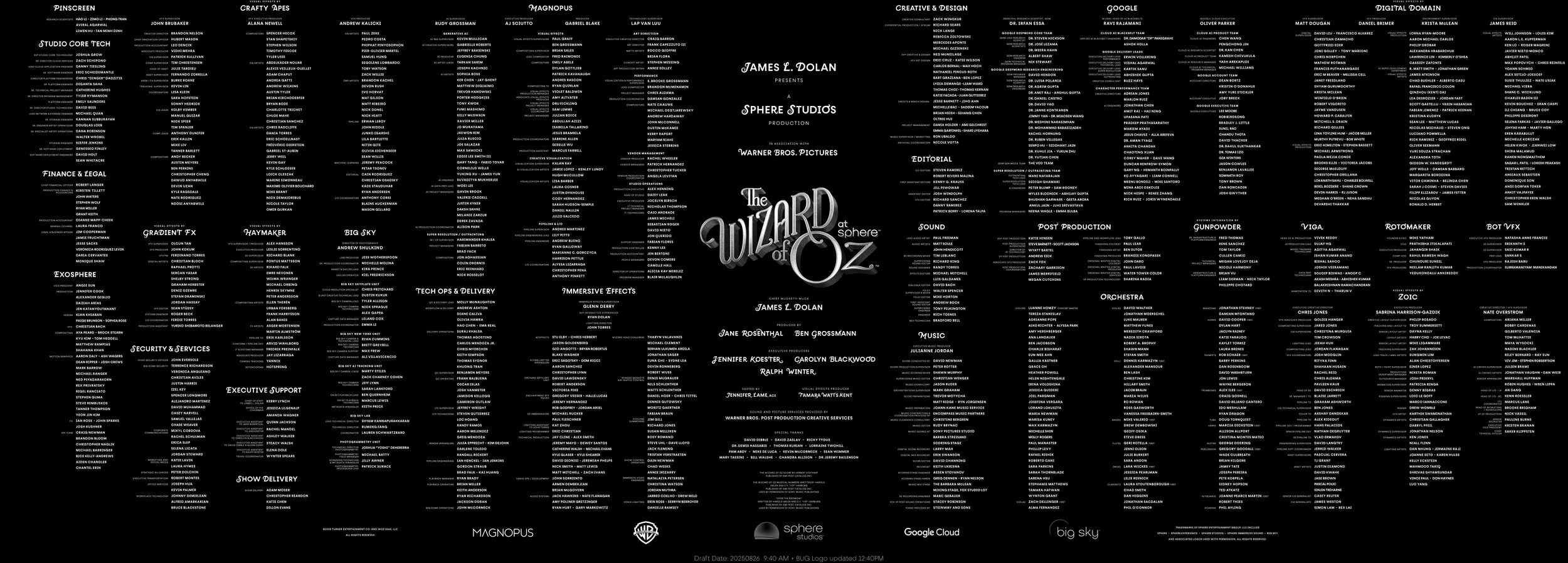 Produced AI character plates for The Wizard of Oz at Sphere, with all assigned outputs delivered into the final immersive film pipeline.